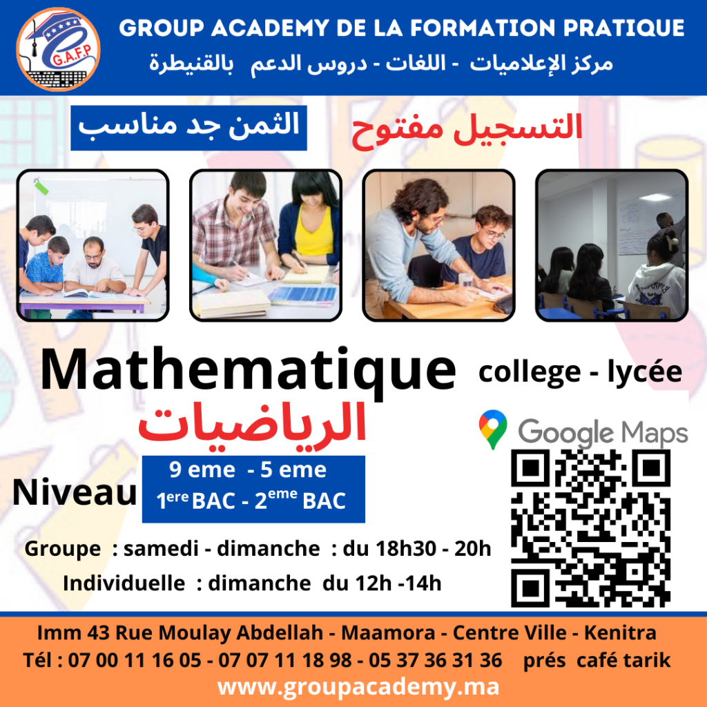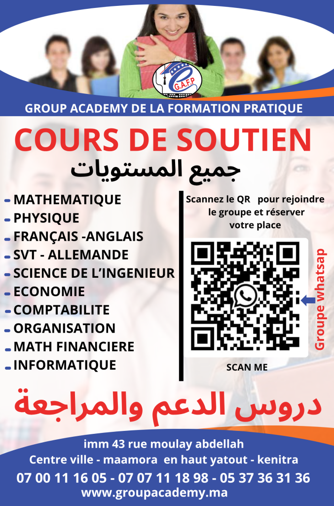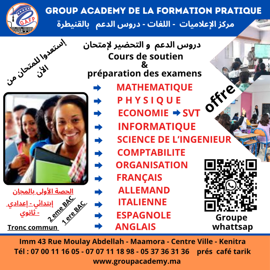 *******cours de soutien à Kenitra : mathématique - physique - arabe- géologie- histoire - philosophie - Français - anglais - italien - allemand - informatique - programmation - comptabilité - économie - SVT*******
