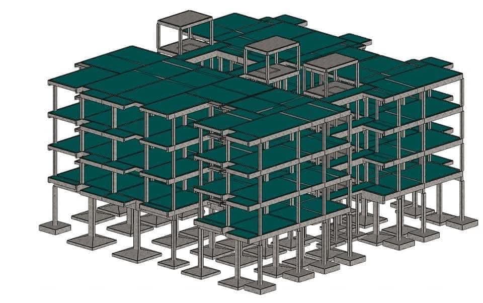 Exemple : Modéliser un bâtiment R+2 en béton armé avec descente de charges, dimensionnement, calculs, rapport.