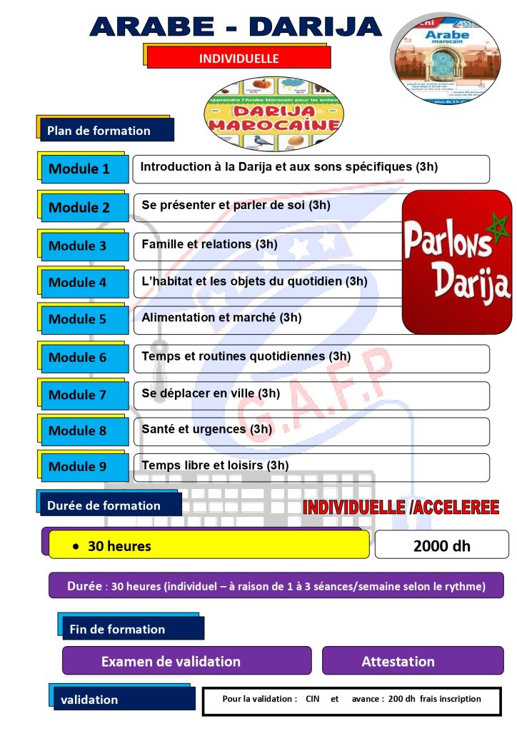 PLAN DE FORMATION – ARABE DARIJA (30 HEURES)